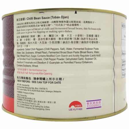 About This Item Lee Kum Kee Chilli Bean Sauce  in the 2.04kg (also referred to as 2kg or 4.5 lb) size is a popular, authentic Sichuan-style condiment available for online purchase ...